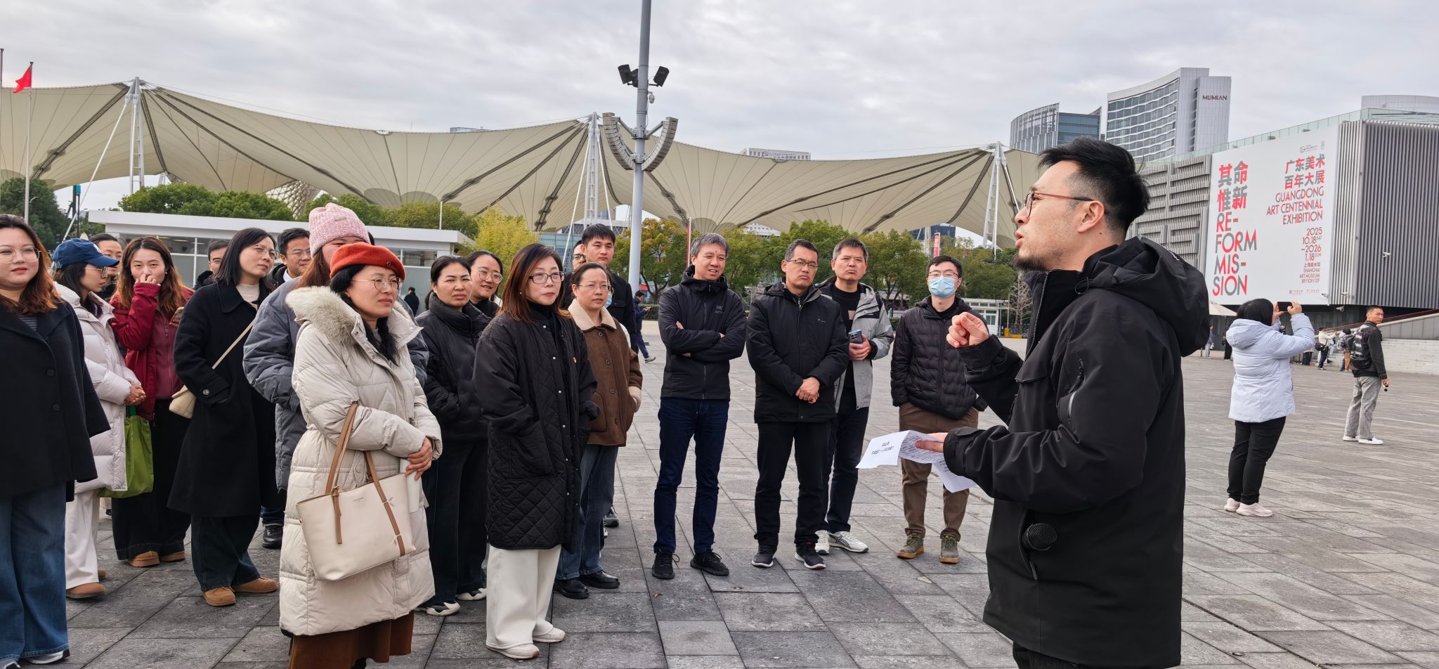 次日下午,党员教师们先后参观上海世博展览馆与中华艺术宫。数字与创意设计学院党总支副书记李楠以“以美铸魂,向光而行”为题分享美育微党课。他结合大展中的优秀作品,分享如何通过艺术形式传递红色精神。在红色主题画作展区,马克思主义学院党总支书记彭曼结合思政视角,为大家解读艺术作品中的红色基因与时代内涵。数字与创意设计学院党总支书记赵喜恒则从艺术创作手法、美学表达角度展开分析,双方围绕艺术作品中的思政元素挖掘展开深入探讨。
