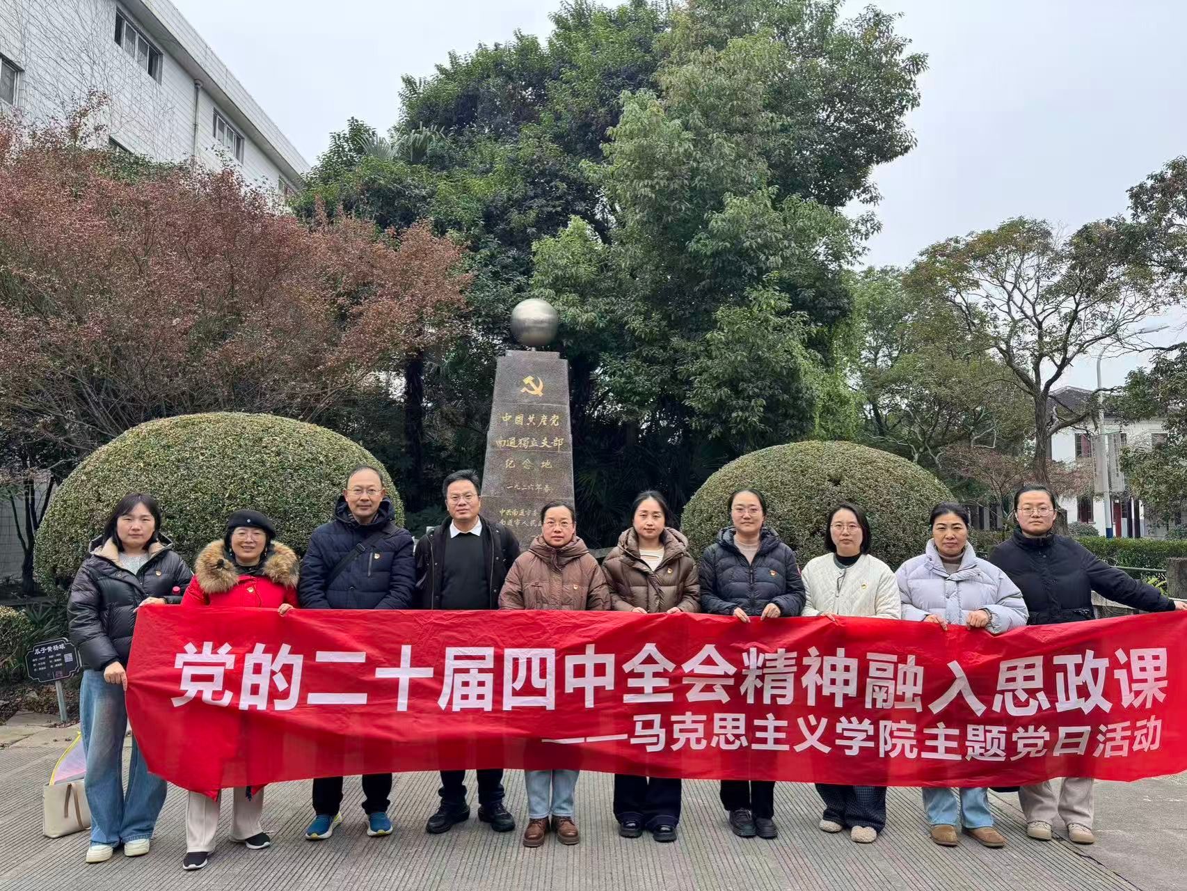 活动中,师生还专程瞻仰了南通地区第一个党组织——南通第一独立支部纪念地,回顾了党组织在大生集团不同历史时期推动新质生产力发展中的领导作用。张树壮老师就该支部的创建与发展历程作了详细介绍。