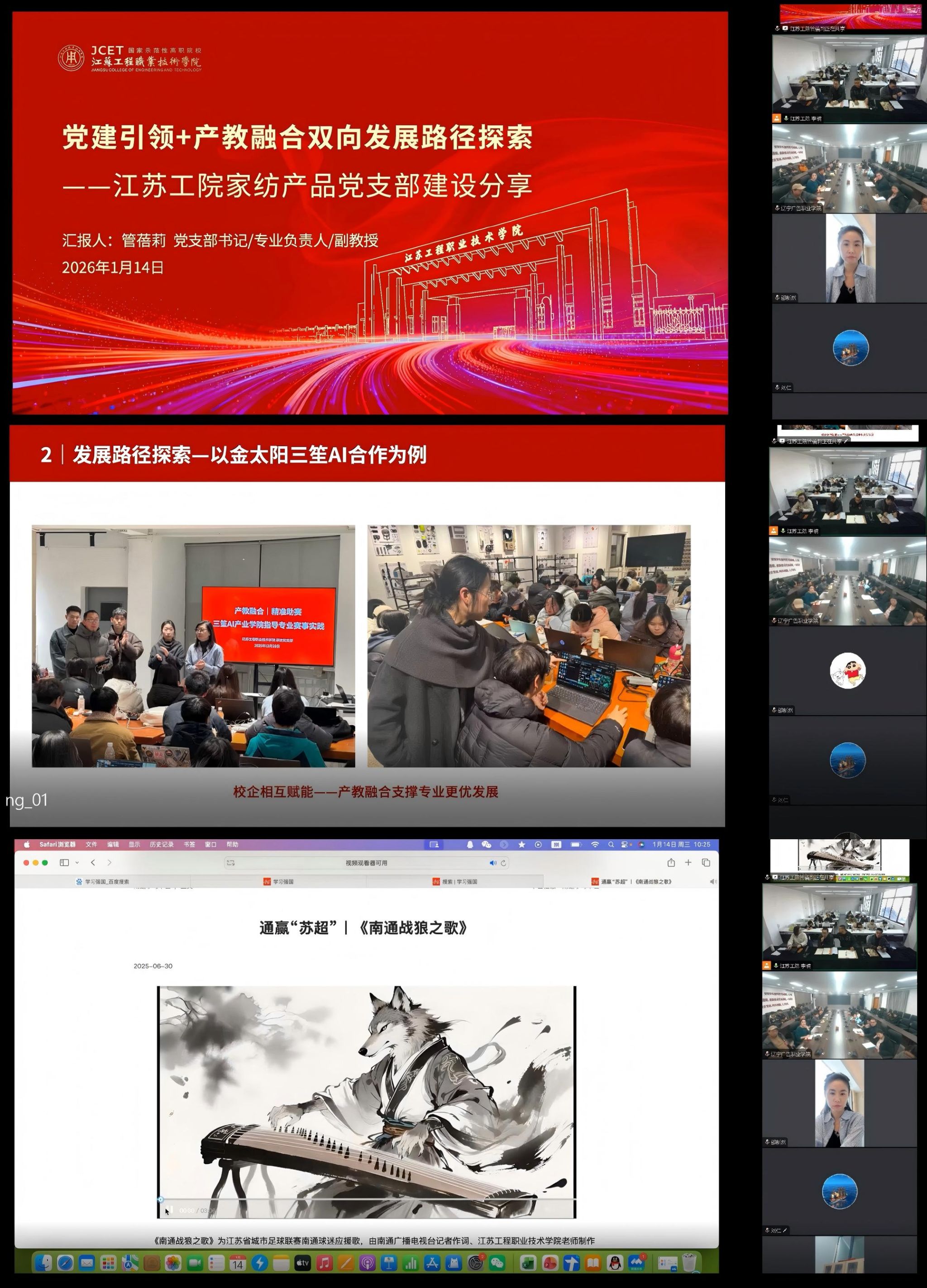 1月14日,我校数字与创意设计学院家纺党支部联合鲁迅美术学院视觉传达设计学院党总支、辽宁广告职业学院工艺美术系党支部,以线上方式启动党建共建合作,围绕“党建结对聚合力、产教融合育新人”主题,共同探索高质量党建引领人才培养的新路径。活动旨在落实党的二十大关于增强党组织政治功能和组织功能的部署,响应教育部推动高校党建与业务融合的号召。三校共建打破了地域、办学层次与体制界限,聚力构建协同育人新格局。