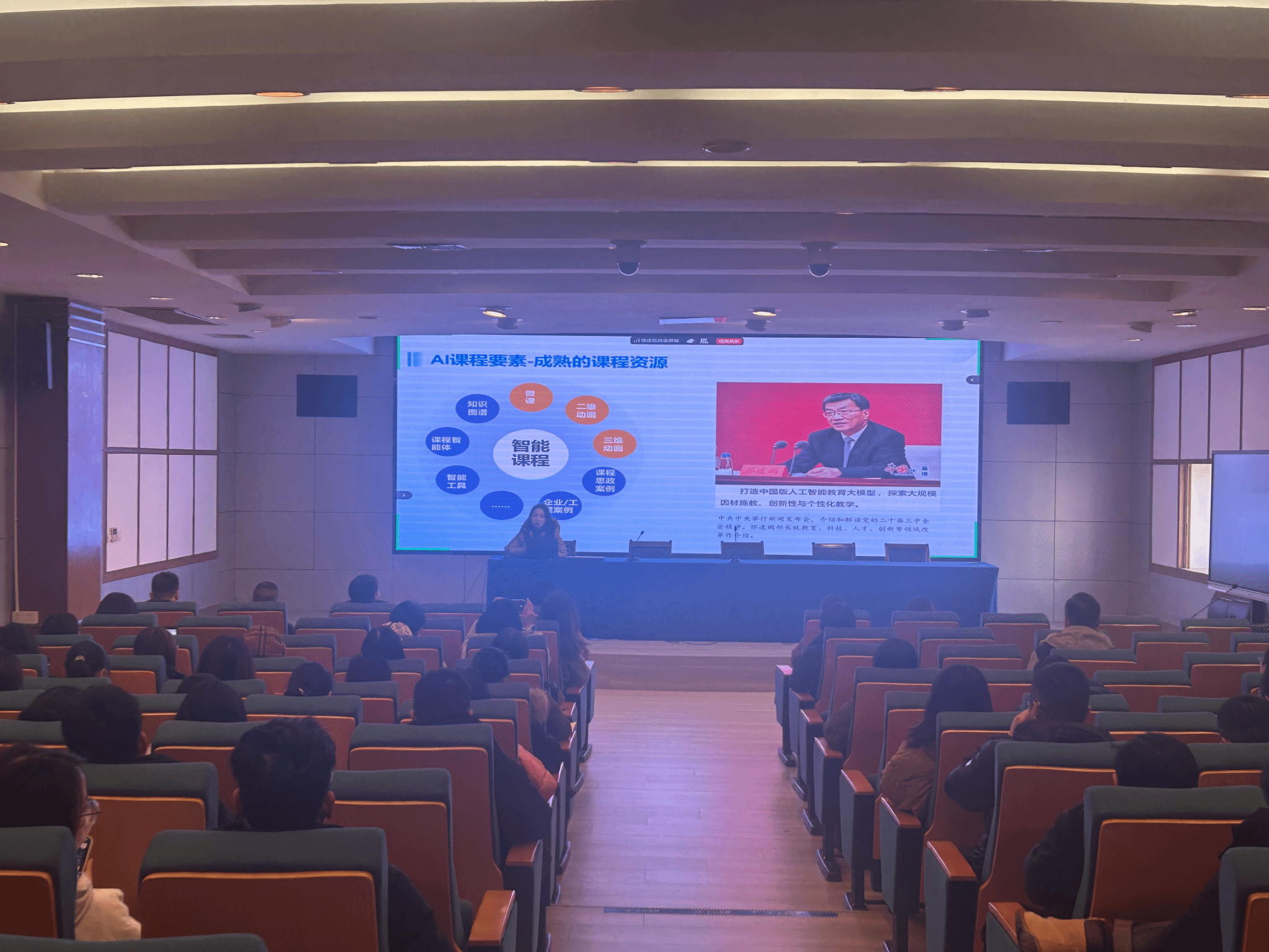 1月21日上午,我校在强毅楼学术报告厅举办基于AI智能体的智慧职教平台培训。智慧职教平台江苏课程中心徐晓红老师受邀担任主讲人,各教学单位分管领导、骨干教师等100余位教师参与培训。培训由教务处副处长窦贤振主持。