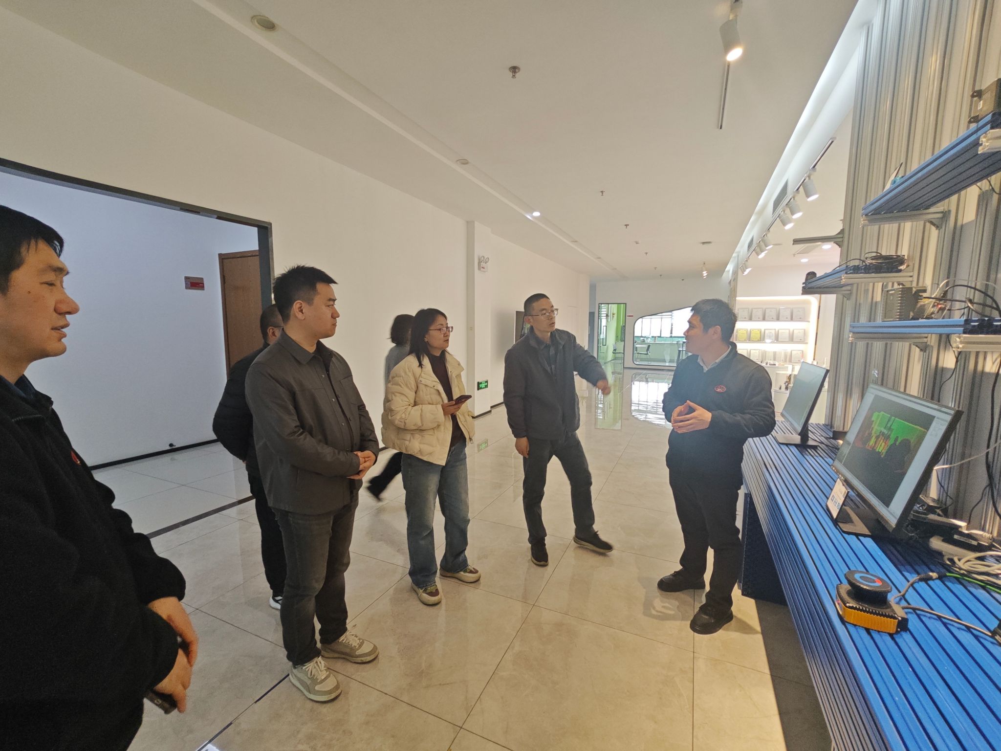 常州华达科捷光电仪器有限公司对学院一行的到访表示热烈欢迎。公司ITZ部门总负责人叶军红、产品总监朱卫平、市场开发经理孙杰等企业领导亲切接待。交流伊始,企业方详细介绍了公司的发展历程、核心业务板块、技术产品优势以及在国内外市场的战略布局。随后,教师团队一行在企业负责人陪同下,实地参观了公司的产品展示区,重点观摩了应用于建筑工程领域的高精度测量仪器、激光扫描设备及先进雷达探测系统,直观了解了行业前沿的技术设备与应用场景。
