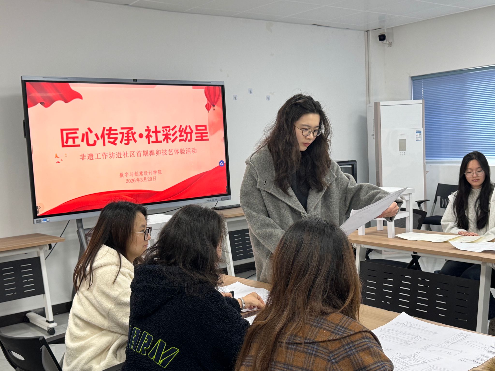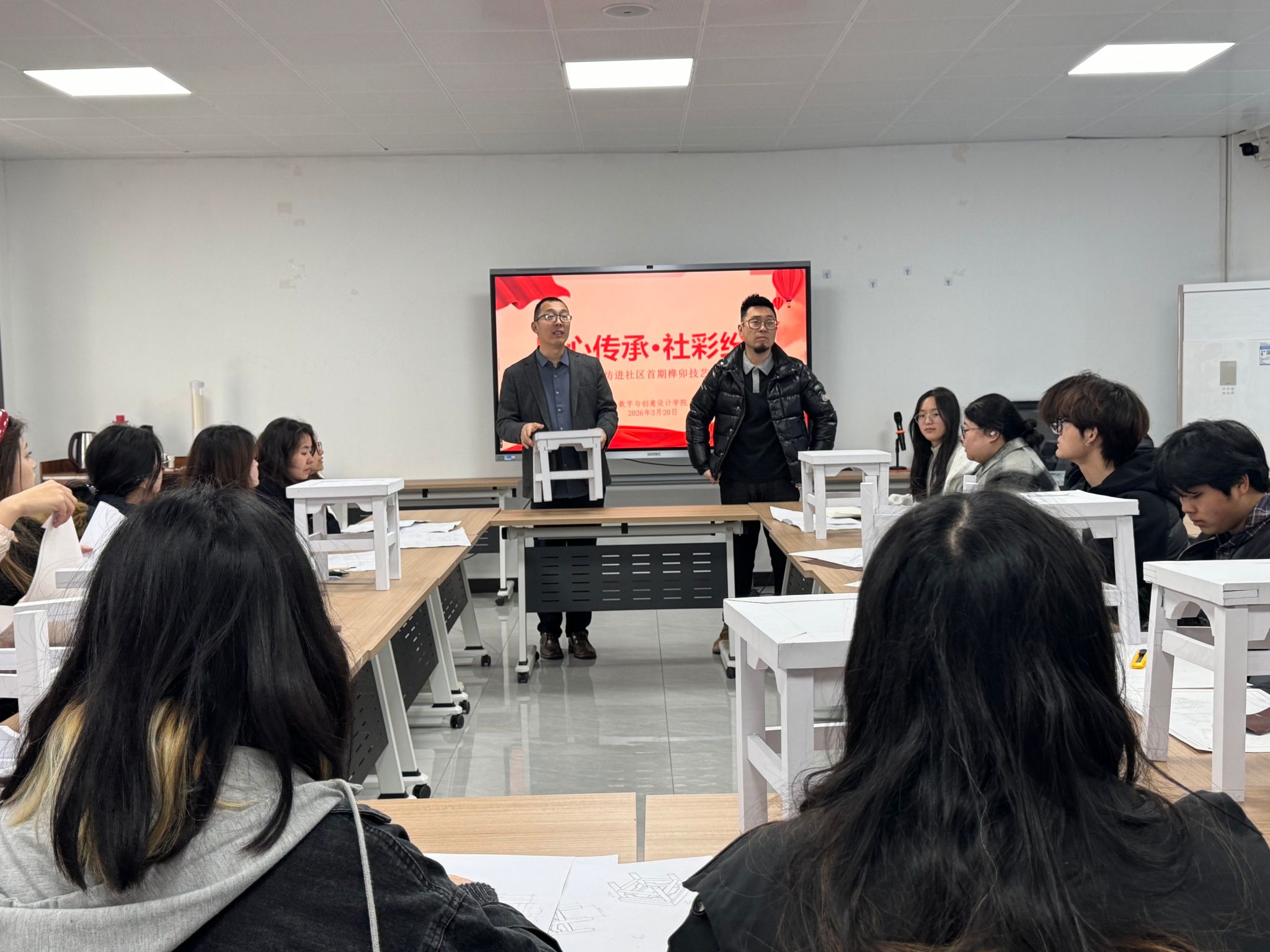 3月20日上午,数字与创意学院“匠心传承·‘社’彩纷呈”非遗工作坊首期榫卯技艺体验活动,在学校一站式活动中心顺利拉开帷幕。本次活动以“榫卯结构”为核心主题,由学院专业课教师孙蕊钰带队指导,20余名学生齐聚一堂,亲手探寻传统木作的千年智慧,数字与创意学院党总支书记赵喜恒、副书记李楠出席活动开幕式。