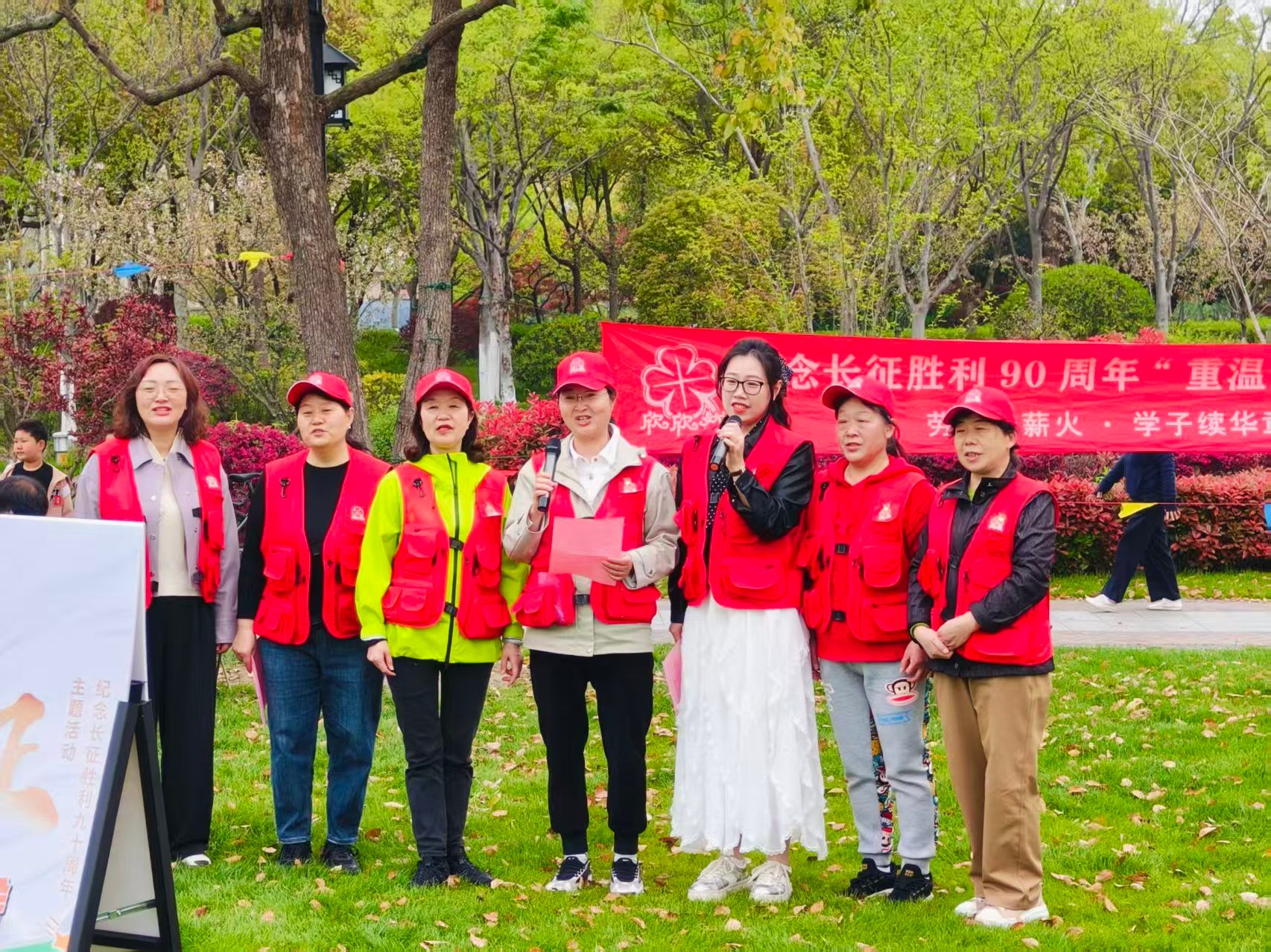 4月11日,经济管理学院团总支联合崇川区新城桥街道工会、妇联、关工委、欣欣然亲子俱乐部共同主办的“重温长征路 薪火永相传”欣欣然帐篷读书会暨信仰公开课,在曹顶纪念公园顺利举行。学院青马班学员、少数民族学生代表与“育梦童行”志愿服务队成员以志愿者身份全程服务并同步开展现场直播,用青春行动传递红色火种,让长征精神在新时代焕发新光芒。