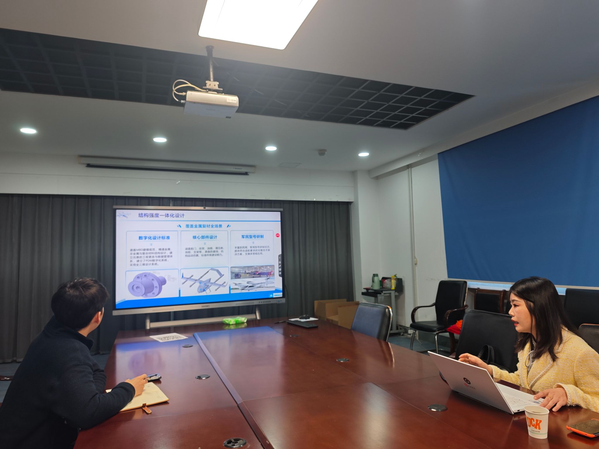 座谈会上,毕书博对企业来访表示欢迎,详细介绍了学院在智能制造、机器人应用等领域的专业建设、师资力量与实训条件,强调学院始终坚持“以产定教、协同育人”理念,愿与优质企业搭建人才培养与技术创新平台。张玲介绍了公司在智能无人系统、无人机全场景解决方案等核心业务,重点阐述了消防无人机、重载运载无人机等产品的技术优势及产业人才需求。