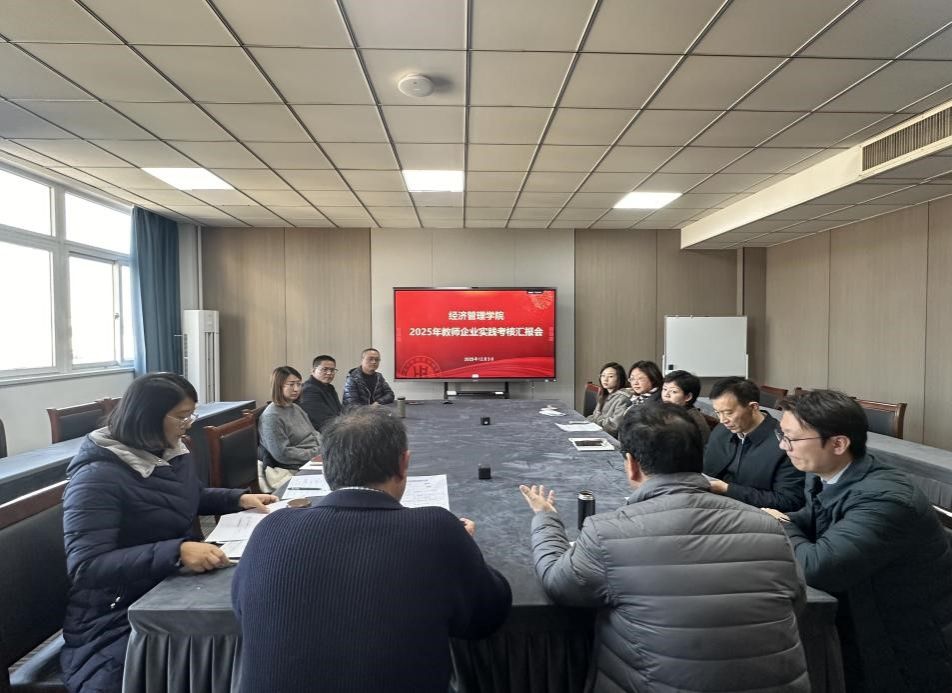 12月3日下午,经济管理学院举办2025年教师企业实践考核汇报会。学院党政班子成员、教研室主任及部分专业负责人组成考核小组,对学院五位教师的企业实践成果进行全面考核。会议由院长王亚鹏主持。