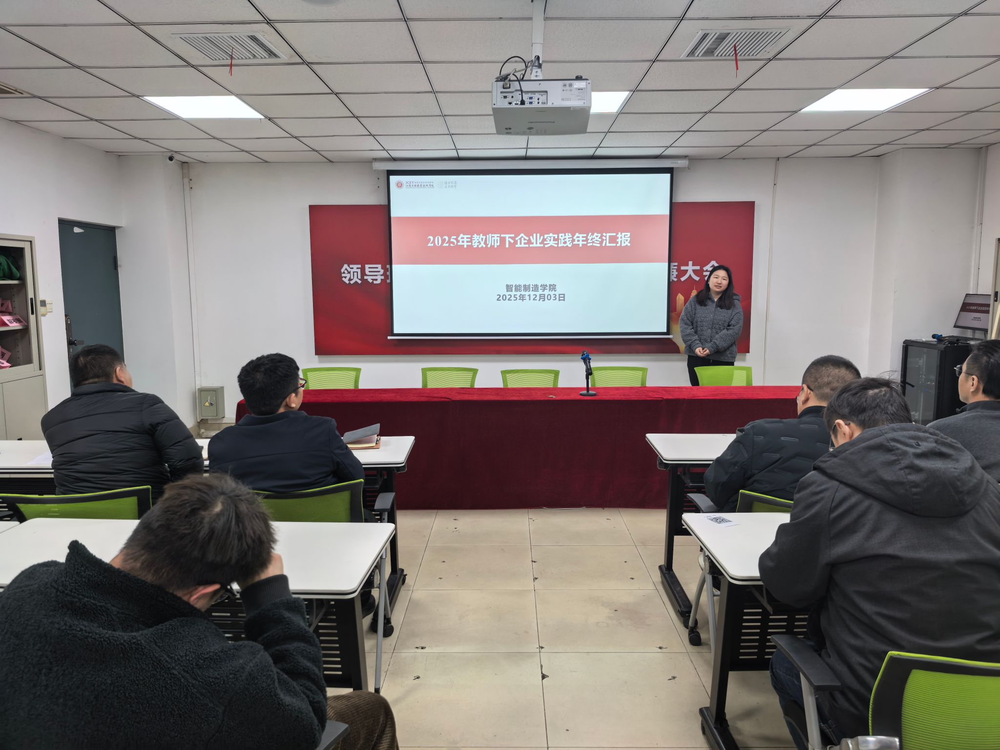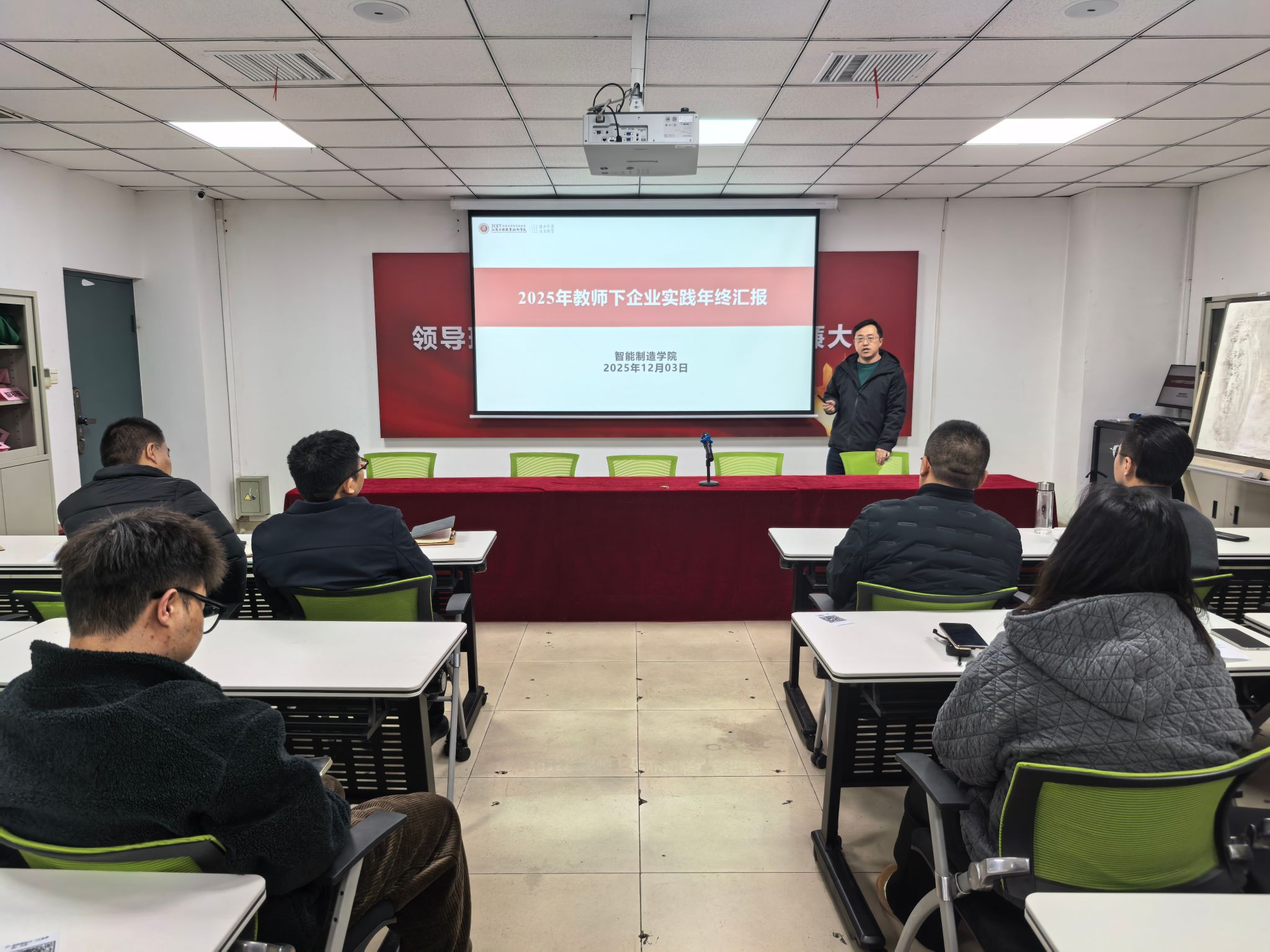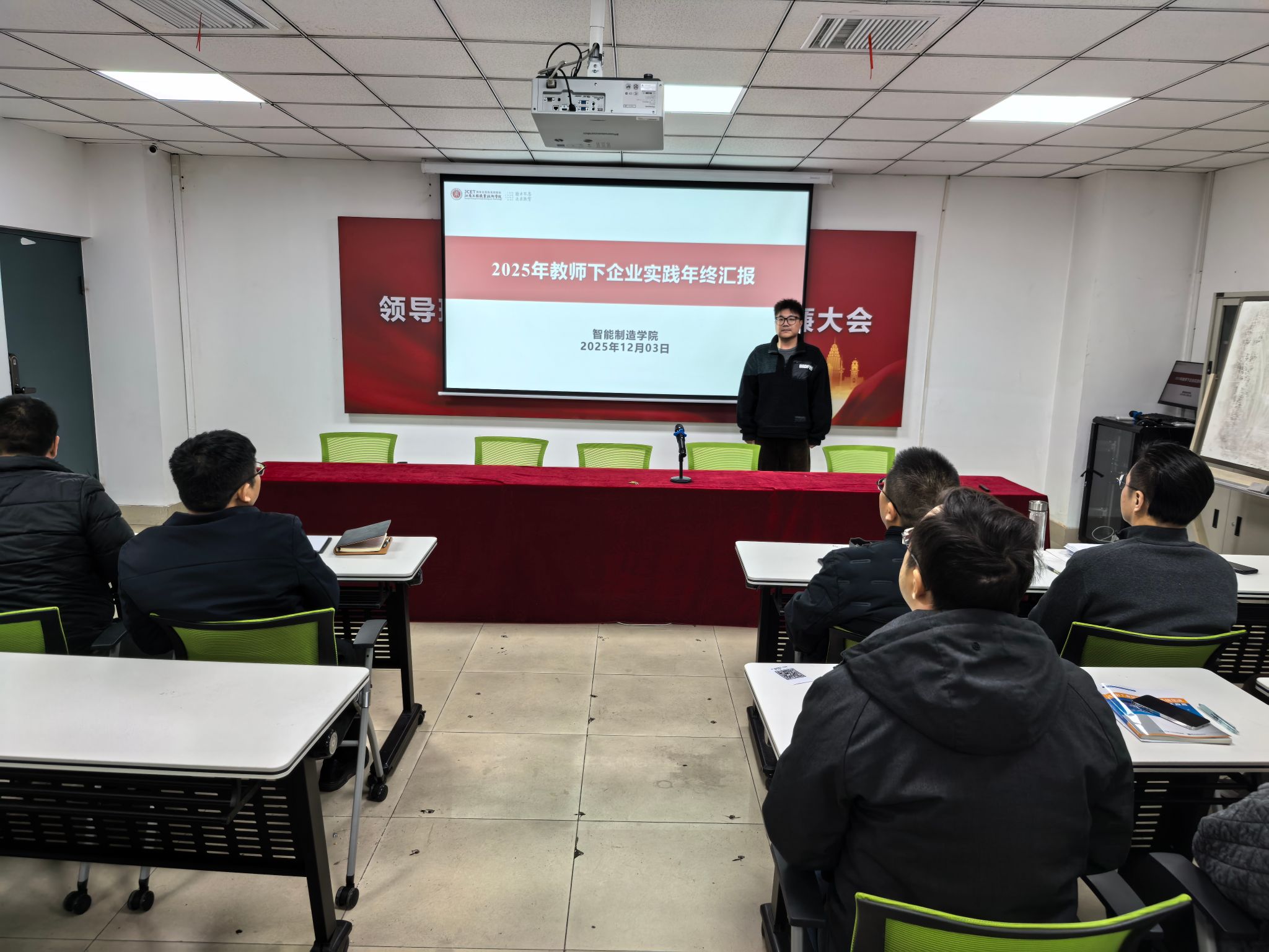 12月3日,智能制造学院组织召开了2025年度教师企业实践考核会议,对本年度参与企业实践的教师进行考评。学院领导、企业专家、各专业负责人及教师代表共同组成考核工作小组,学院院长胡志刚担任组长并主持会议。