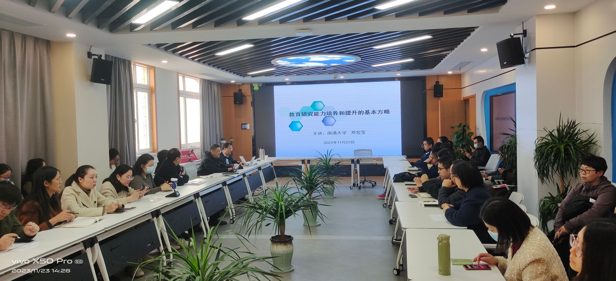 11月23日下午,科研处邀请南通大学博士生导师邓宏宝教授来校作题为“教育研究能力培养与提升的基本方略”的专题讲座。科研处处长姜生教授出席并主持会议。学校高层次人才、人文社科研究骨干等50多人聆听了讲座。